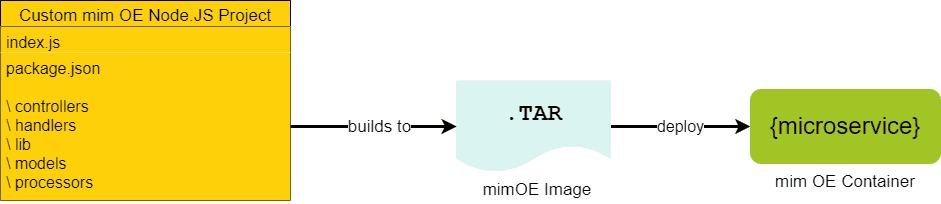 In order for a microservice to be deployed onto a node running the mim OE Runtime, the code that defines that microservice must first exist as a custom Node.JS project. This Node.JS code is considered the mim OE Image.