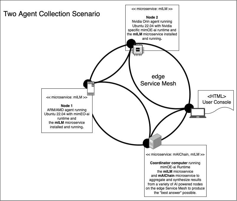 The objective of this tutorial is to demonstrate how to create a Two Agent Collection scenario of mimik ai. A Two Agent Collection is a configuration of mimik ai that has a Coordinator Machine and an AMD/ARM Agent Machine and an Nvidia Orin Nano machine. The Coordinator Machine accepts a prompt from a client and then passes the prompt on the Two Agent Collection for processing.